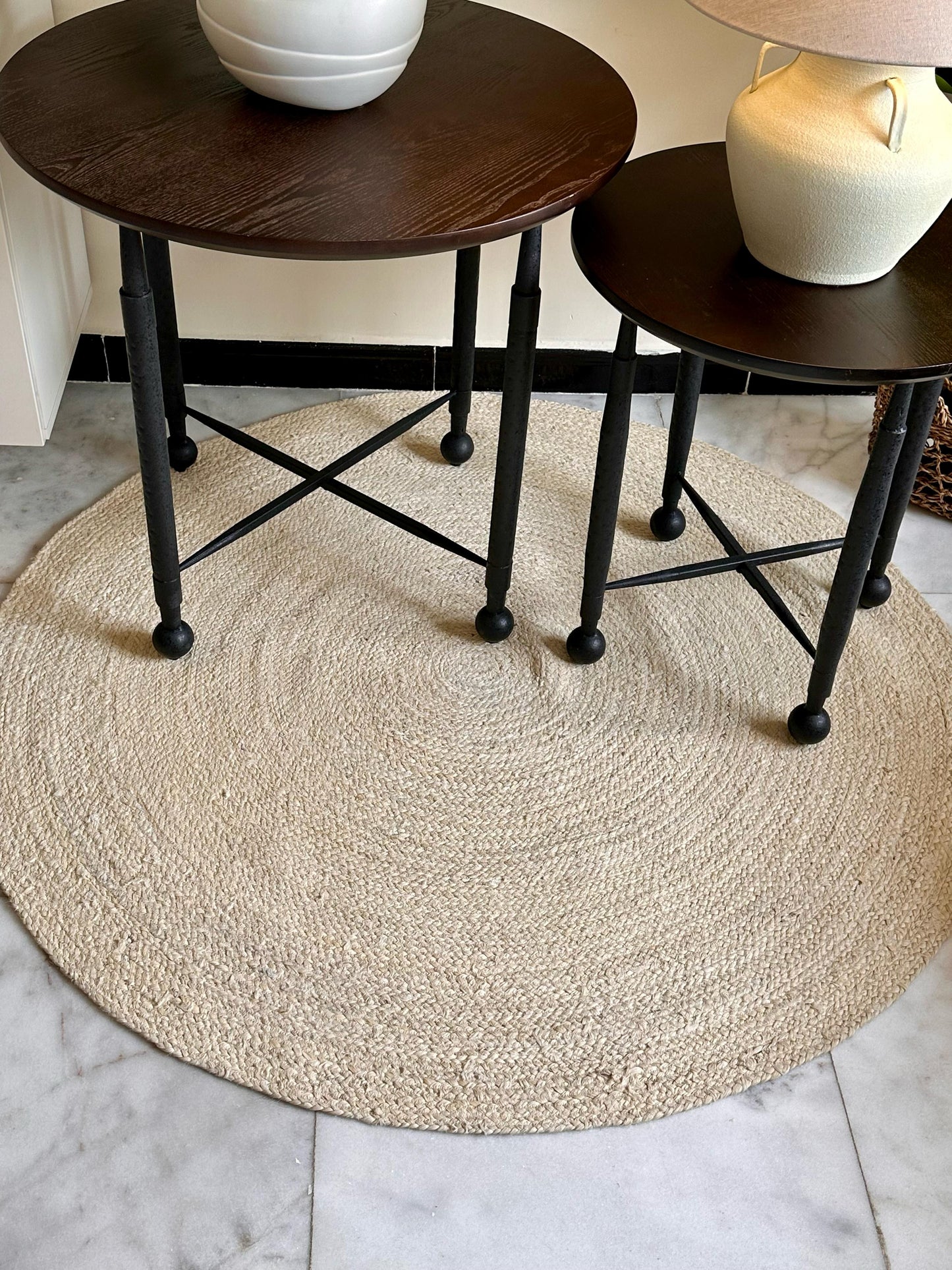 Bring warmth and texture to your space with this handcrafted round rug in a neutral beige tone. Its woven design adds a touch of bohemian charm while keeping a minimalist feel. Perfect under armchairs, consoles, or coffee tables, this carpet is a cozy and stylish base for any corner of your home.