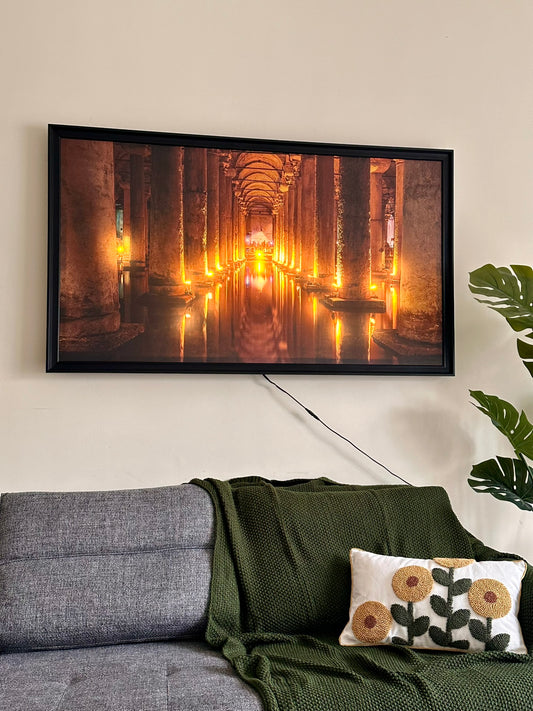 Illuminated Wall Art – Ancient Columns Reflection with Warm Lighting