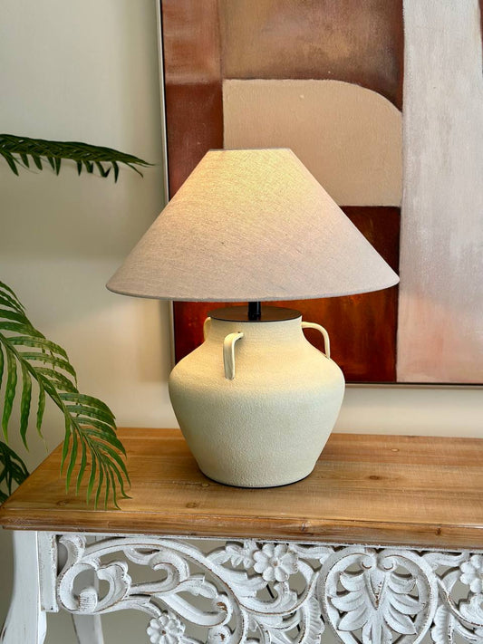 Textured Ceramic Table Lamp – Soft Ivory with Minimal Handles CODE 3210)