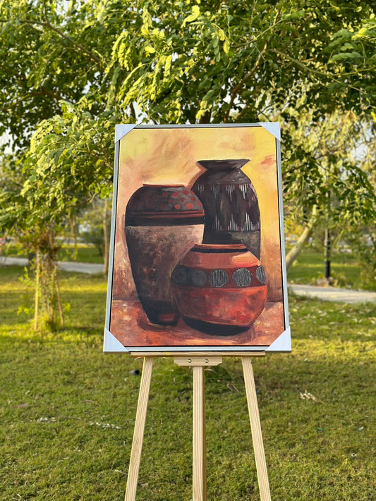 “Ancient Echoes” – Earth-Toned Still Life with Tribal Pottery Oil Paint Size 70x100 cm CODE 3105