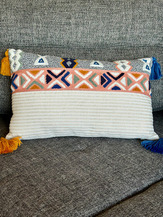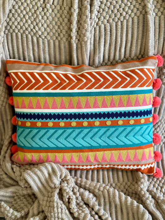 Boho Tribal Pattern Cushion – Multicolor with Pom-Pom Sides CODE 3325