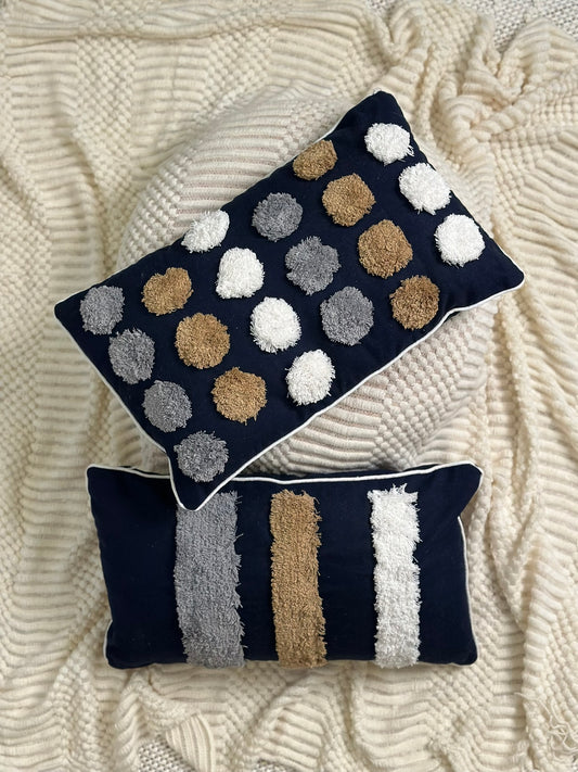 Modern Textured Striped Cushion – Navy Blue with Neutral Tufts CODE 3316 B LIN