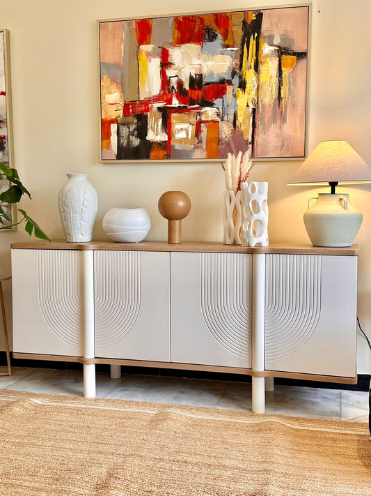 Contemporary Console Cabinet with Linear Arch Design – 4 Doors
