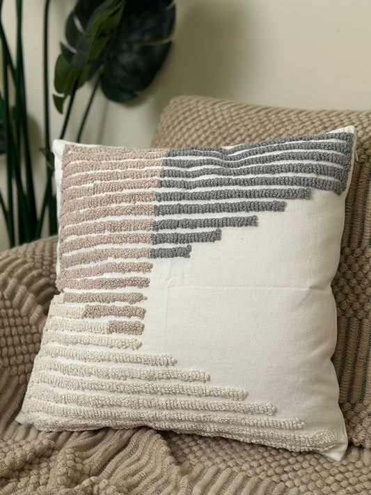 Neutral Textured Cushion Set with Fringed Details CODE 3319