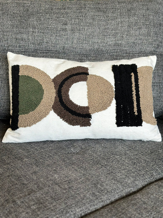 Modern Boho Tufted Cushion Set – Beige, Black & Terracotta CODE 3318