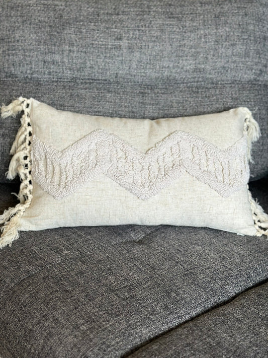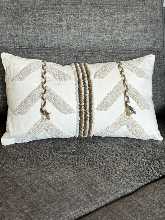 Boho-Inspired Beige Cushion Set with Chevron Embroidery & Side Tassels CODE 3313 RAD