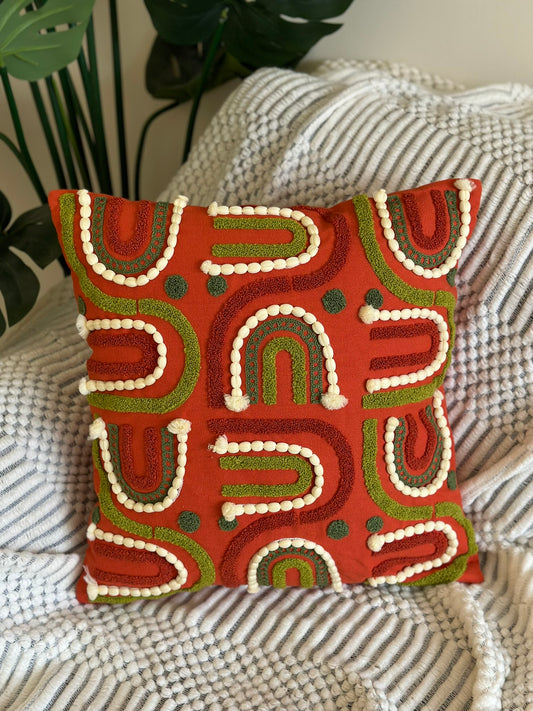 Boho Rainbow Embroidered Cushion with Pom-Pom Detailing CODE 3323 R