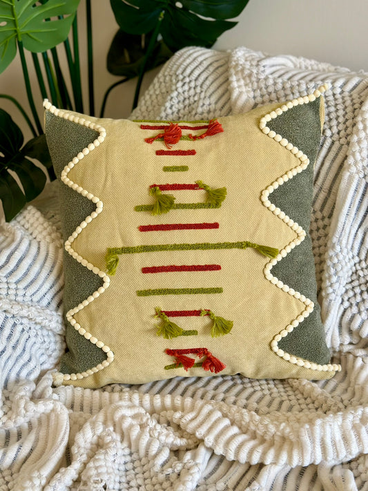 Handmade Tassel Accent Cushion with Zigzag Pom-Pom Edges CODE 3323 G