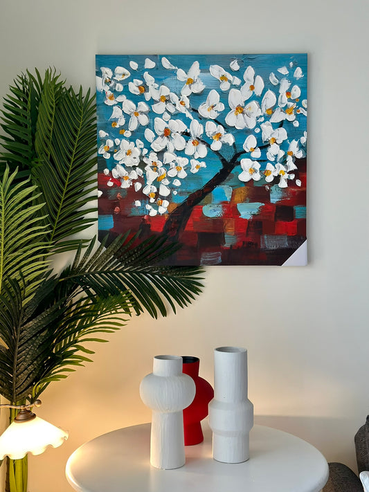 “Spring Whispers” – Textured Cherry Blossom Wall Art Oil Paint Size 80x80cm CODE 3106