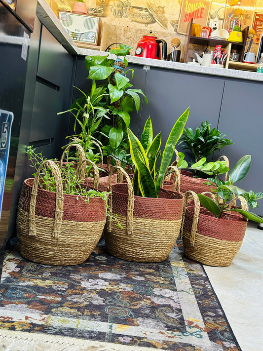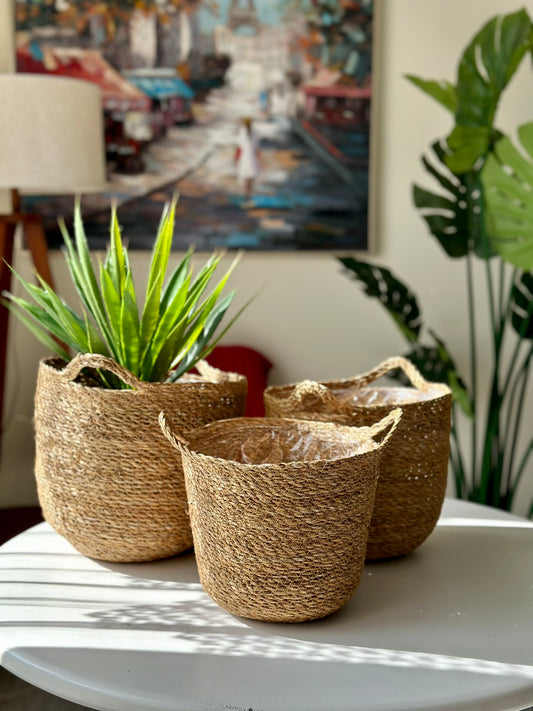 Handwoven Seagrass Basket Set – Sturdy Vertical Handle Design