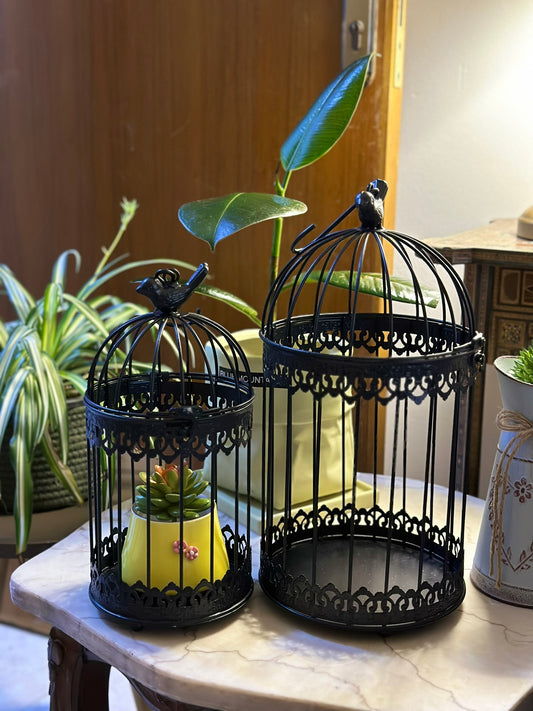 Vintage Black Decorative Birdcage Set – Iron Wire (Set of 2) CODE 0288
