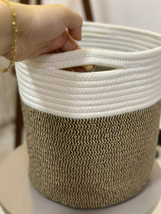 Two-Tone Woven Cotton Basket – Natural Beige & White CODE 1108