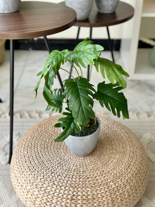 Artificial Monstera Bush in Textured Gray Pot Artificial Plant CODE 2621