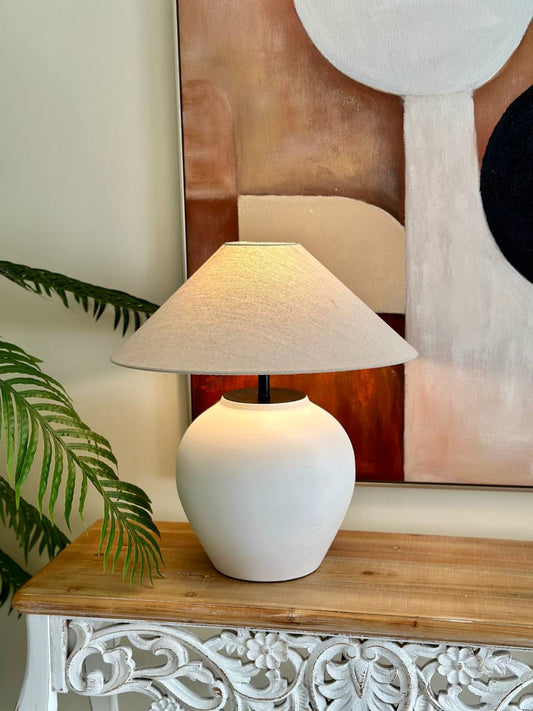 Matte White Ceramic Table Lamp – Minimalist Elegance (CODE 3202)